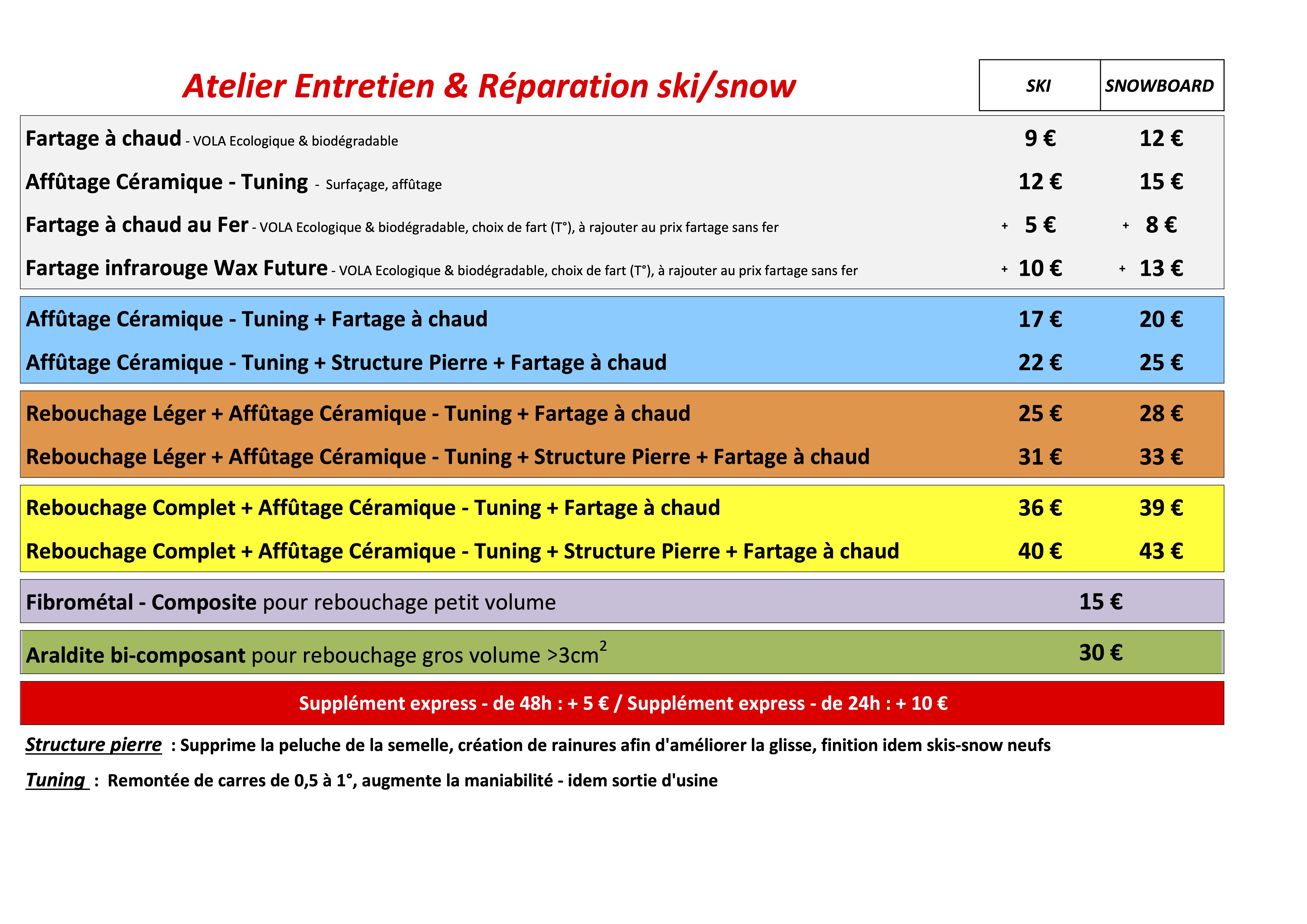 Mais nous avons également un atelier de réparation ski/snow pour lequel on nous reconnait grâce à notre rapidité, qualité et minutie. (retrouvez nos tarifs ici).